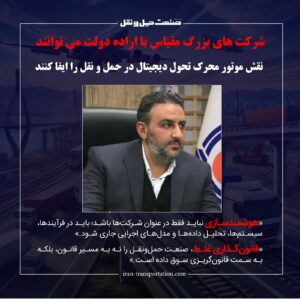 شرکت های بزرگ مقیاس با اراده دولت می توانند نقش موتور محرک تحول دیجیتال در حمل و نقل را ایفا کنند. مهندس علی حسینی ادیب،